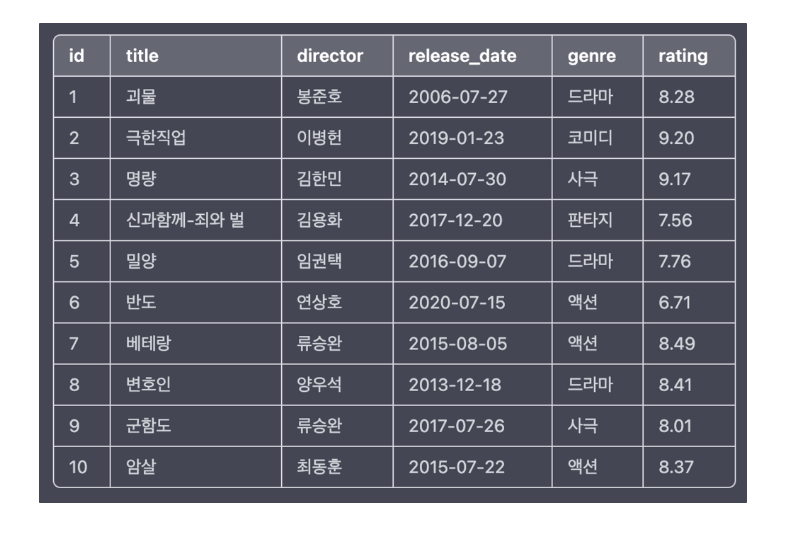 ('괴물', '봉준호', '2006-07-27', '드라마', 8.28),