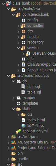 - 정적자원을 두는 패키지css, js, image 파일등을 넣어 둘 수 있습니다.