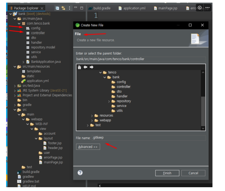 - 이 예제에서는 webapp/WEB-INF(보안폴더)/view/ 형식으로 생성할 예정 입니다.