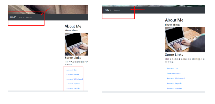 완성 화면 보기 - 로그인 여부에 따라 메뉴 변동, 하단 링크는 그대로 두고 추후 인증 검사 로직을 구현해 봅시다.