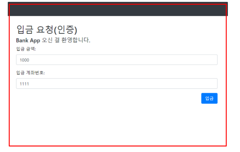 <label for="amount">입금 금액:</label> <input type="number" class="form-control" placeholder="Enter amount" id="amount" name="amount" value="1000">