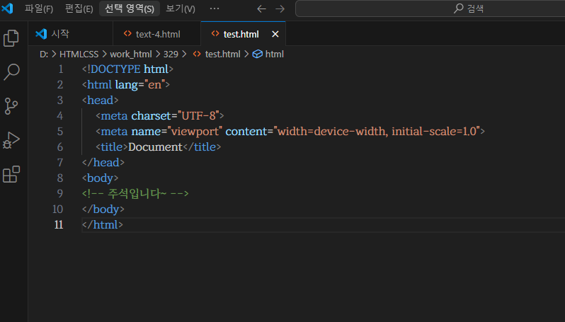 <!-- ~~ --> 한줄 주석