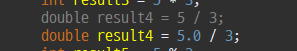 double 실수로 소숫점 표현시 결과 값이 실수로 반영된다.