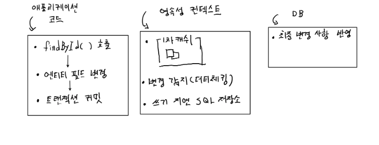 // 즉, 트랜잭션 커밋 시 자동으로 영속성 컨텍스트와 데이터베이스(DB)에 변경 사항이 반영된다
