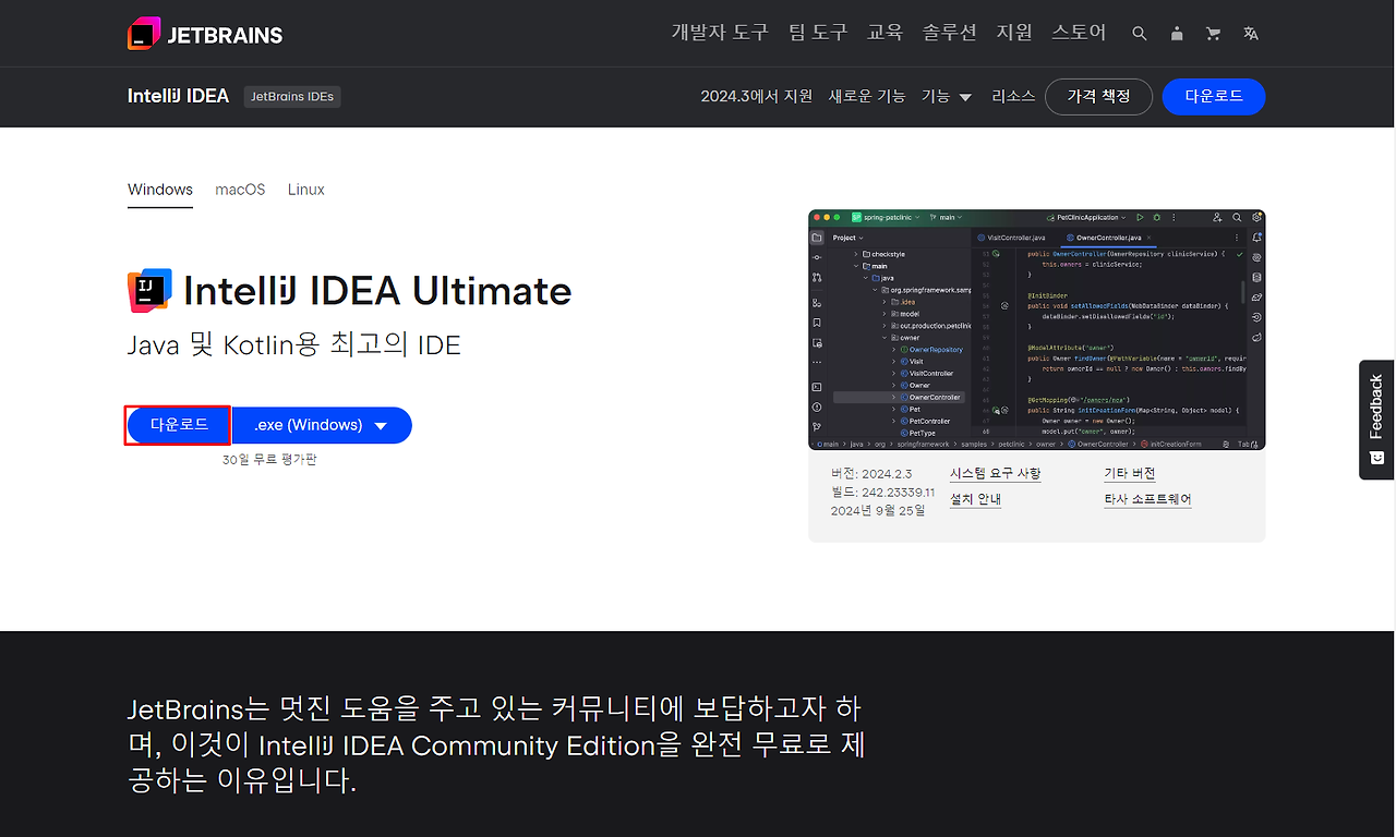 https://www.jetbrains.com/ko-kr/idea/download/?section=windows