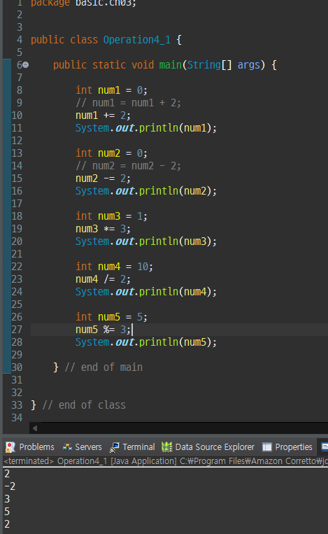 복합 대입 연산자는 대입 연산자 앞에 연산자를 작성해주어야 한다.