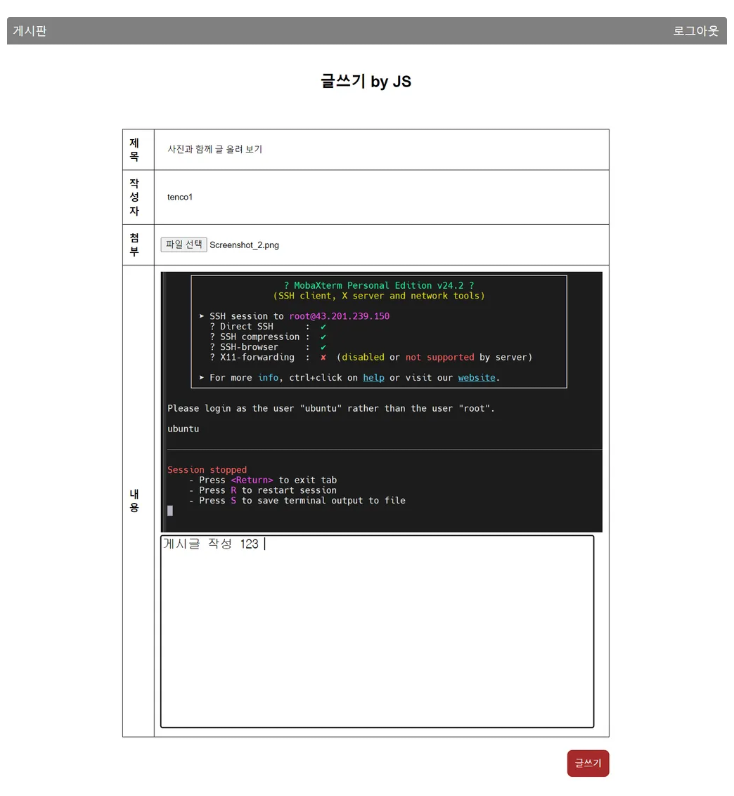 임시 코드 - boardWrite.js
