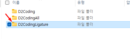 해제한 파일 중 D2CodingLigature 파일에 들어갑니다.