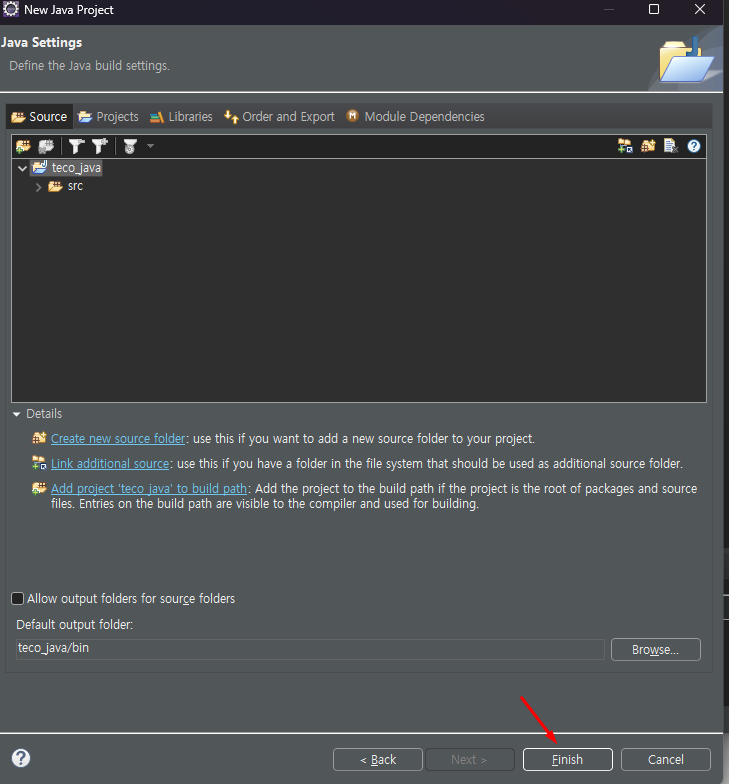 Java Project name 설정 후 완료