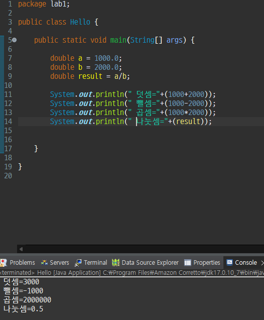 2. 1000과 2000을 가지고 사칙 연산을 한 후에, 결과를 출력하는 프로그램을 작성하라.