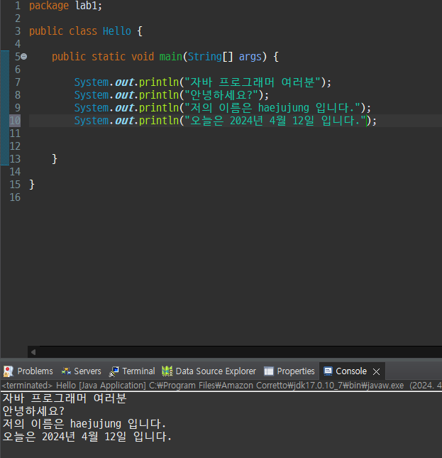 1. 자신의 이름, 날짜를 출력하는 프로그램을 작성하라.