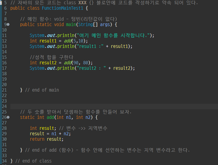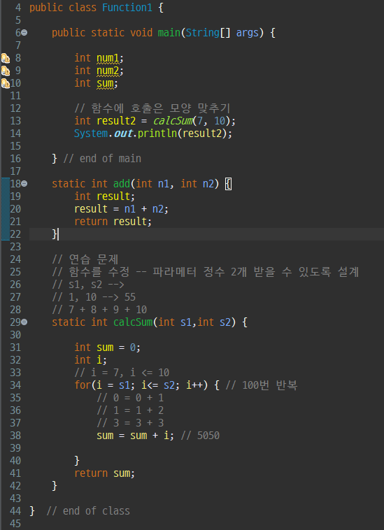 함수는 이름, 파마메터(매개 변수), 반환 값, 함수 몸체(body)로 구성
