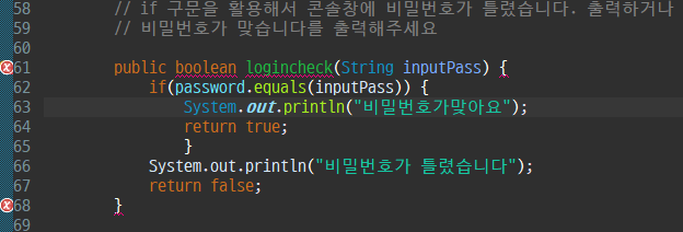 문자열 비교는 equals 라는 메서드를 사용한다