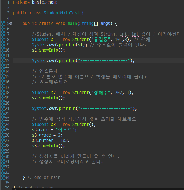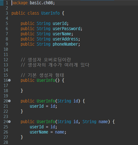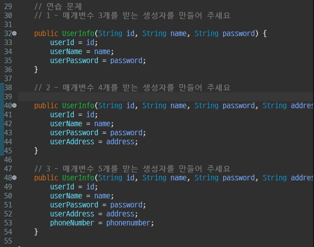 - 필요에 따라 여러 생성자를 만들어 줄 수 있다.