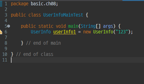 - 사용자 정의 생성자를 선언하면 컴파일러는 기본 생성자 (default constructor)는 제공되지 않음