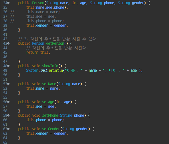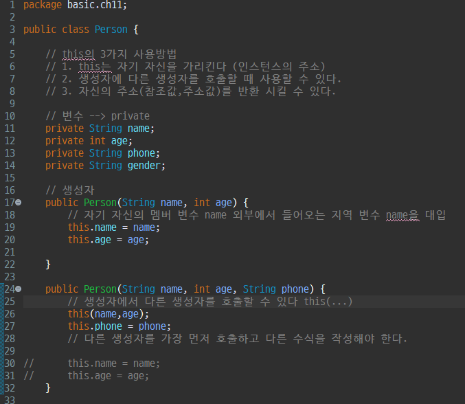 2. 생성자에서 또 다른 생성자를 호출할 때 사용할 수 있다.