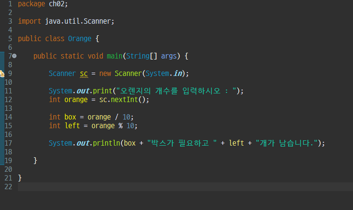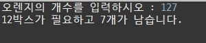 1. 하나의 상자에 오렌지를 10개씩 담을 수 있다고 하자. 오렌지가 127개가 있다면 상자 몇 개가 필요한가?