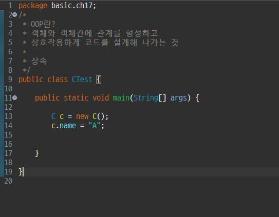 상속(Inheritance)은 객체 지향 프로그래밍에서 중요한 개념 중 하나입니다. 상속은 기존의 클래스를 확장하여 새로운 클래스를 정의하는 메커니즘을 말합니다. 상속을 통해 기존 클래스의 속성과 메서드를 재사용하고 확장하여 새로운 클래스를 만들 수 있습니다.