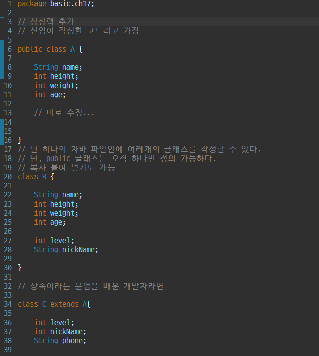 - 자식 클래스(Child Class) 또는 서브 클래스(Subclass): 부모 클래스를 확장하여 새롭게 정의되는 클래스입니다. 자식 클래스는 부모 클래스의 모든 속성과 메서드를 상속받습니다.