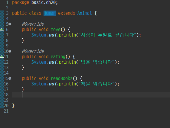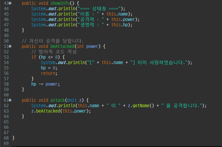 - 업캐스팅은 부모 클래스의 참조 변수로 자식 클래스의 객체를 참조하는 것을 말합니다.