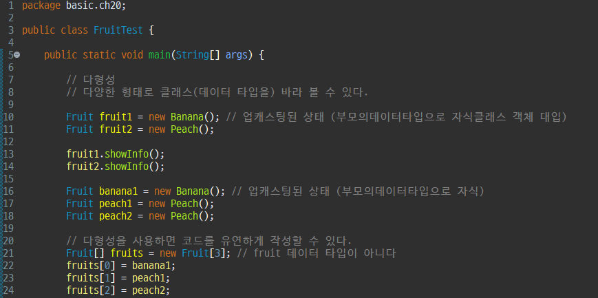 ● 다형성을 잘 활용하면 유연하고 확장성있고, 유지보수가 편리한 프로그램을 만들수 있음