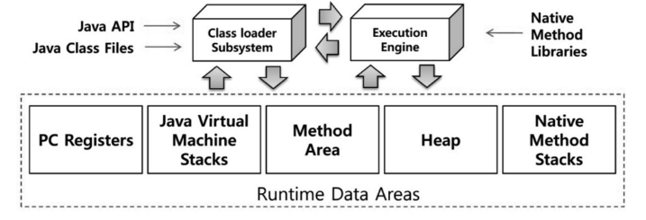 우리가 자바 프로그램을 실행을 하면 프로그램을 수행하기 위해 운영체제로부터 할당받는 메모리들이 존재 합니다. 그 특성에 따라 영역등이 존재 하는데 그 구성요소들은 아래와 같습니다.