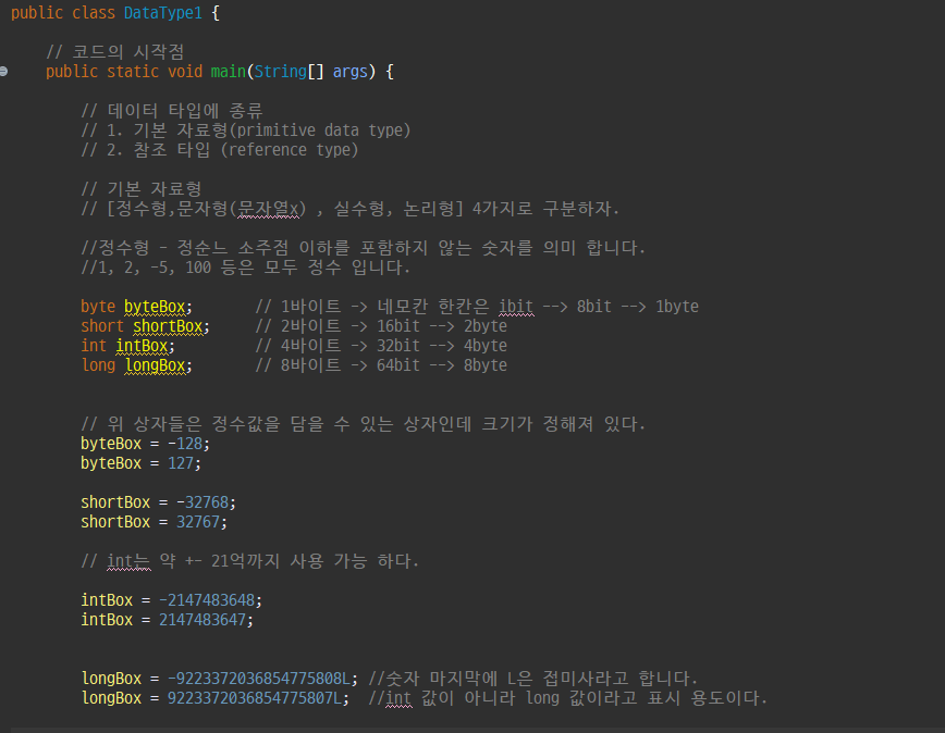 보통 오른쪽에 기술 되는 수의 기본 단위는 4바이트 크기인 int 형으로 먼저 인지한다.