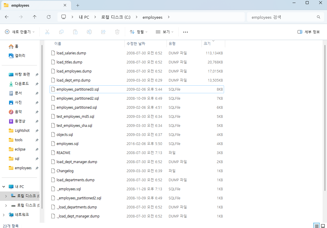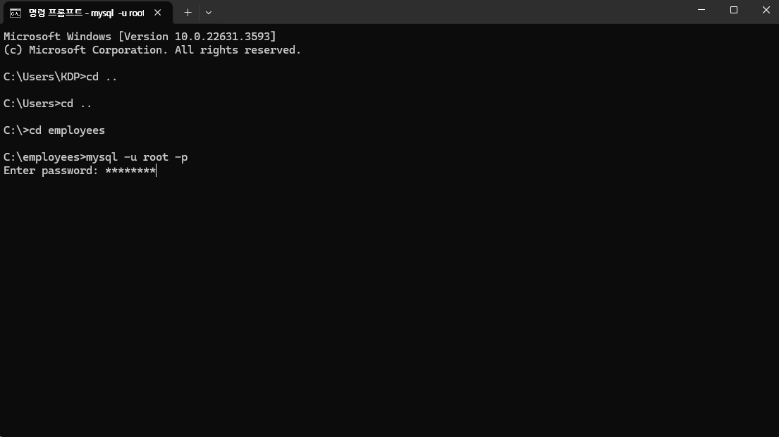1. 프롬프트 창에서 경로를 employees 로 이동해 주세요