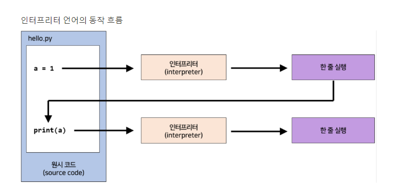 💡 인터프리터 언어의 경우, 코드를 실행하기 위해 컴파일 단계가 없습니다. 대신, 소스 코드가 런타임에 직접 해석되고 실행됩니다.