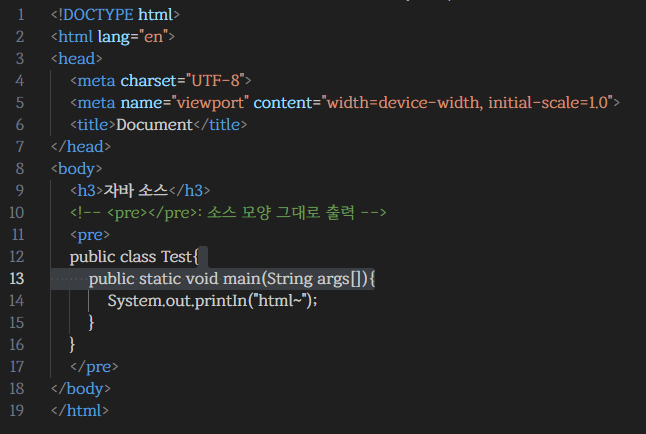 이러한 <pre> 요소를 사용하면, 독특한 서식의 텍스트나 컴퓨터 코드 등을 HTML 문서에 그대로 표현할 수 있습니다.