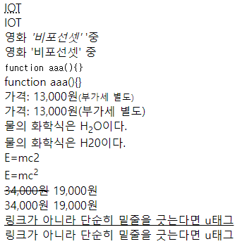 <sub> 요소 내부의 텍스트는 일반 텍스트 라인보다 아래쪽에 절반 크기의 작은 문자로 표현되며,