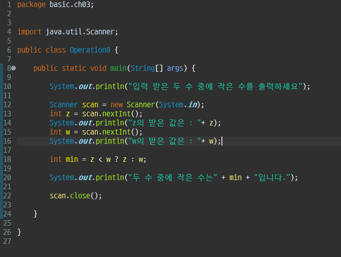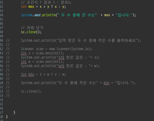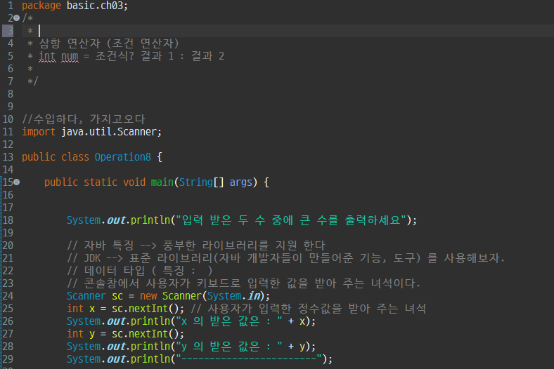int num = (5>3) ? 10 : 20; 조건식이 참이라서 결과 10이 선택됩니다. |