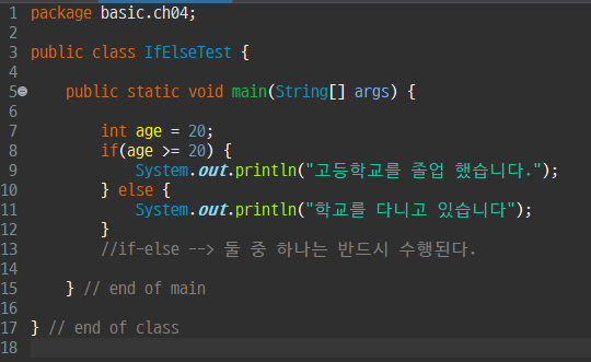 // 조건식이 '참'인 경우에(조건에 맞는 경우) 수행문이 수행됨