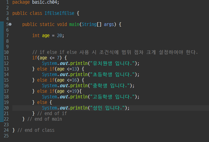 3. 조건이 여러 개 일 때의 if else if else 구문