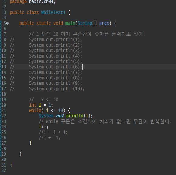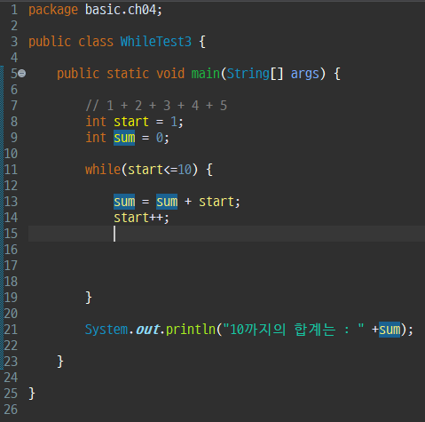 1 부터 10까지 덧셈에 연산을 콘솔창에 출력 하시오 단, while 구문 작성